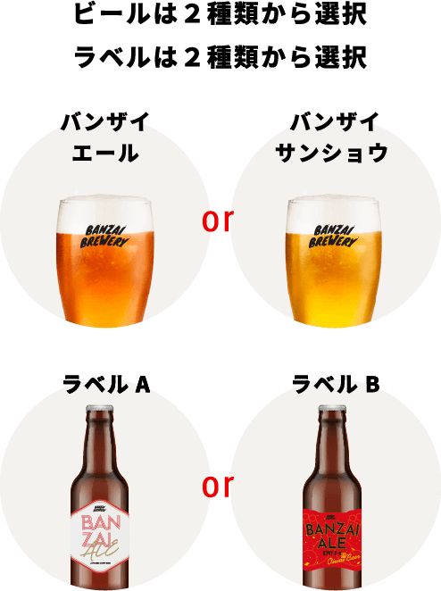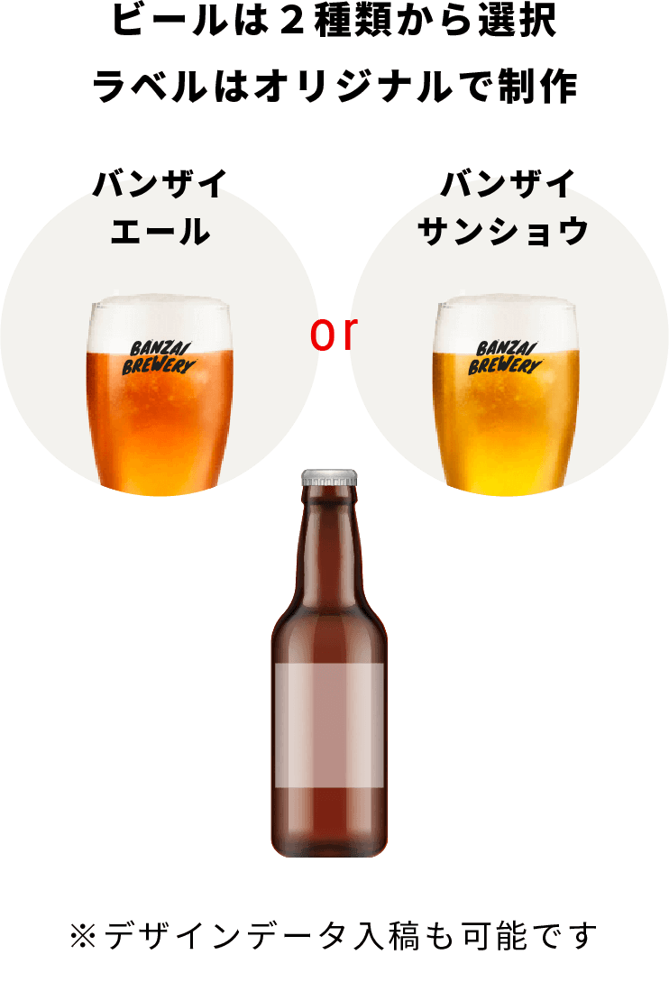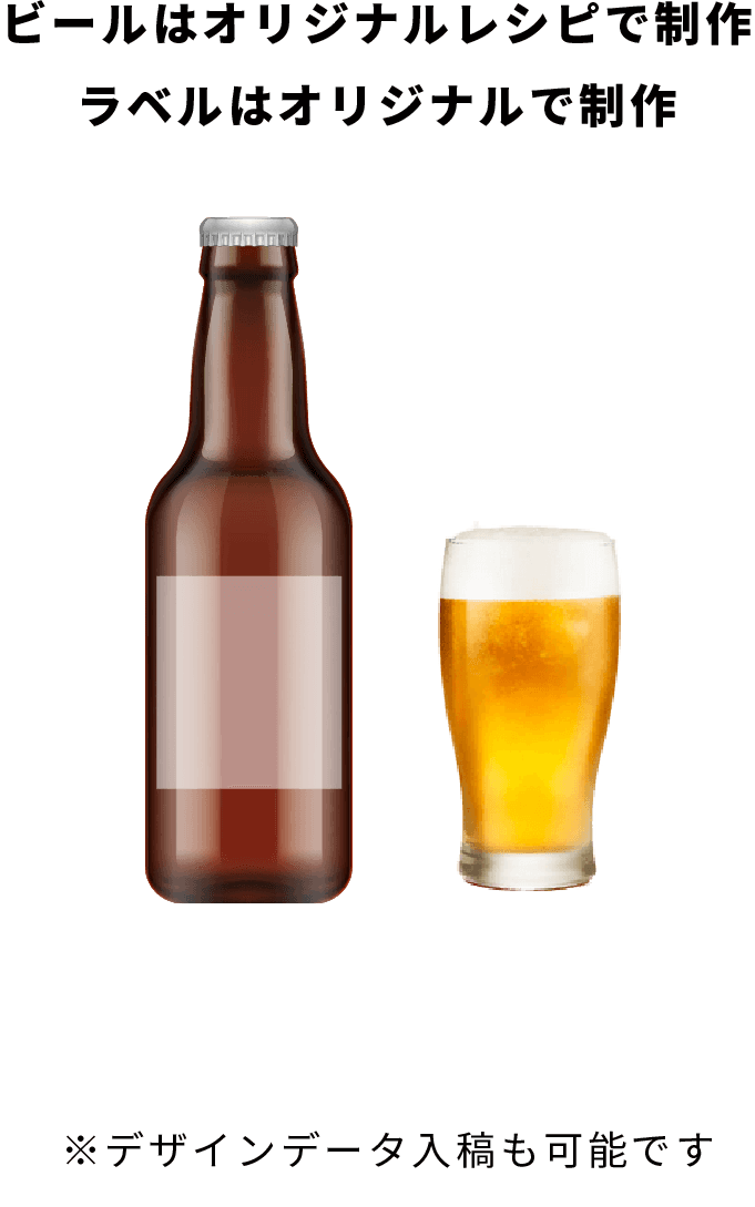 人気のビールとラベルからチョイスすることも、ラベルだけオーダーメイドでつくることも、世界で1つだけのビールをつくることもできます!